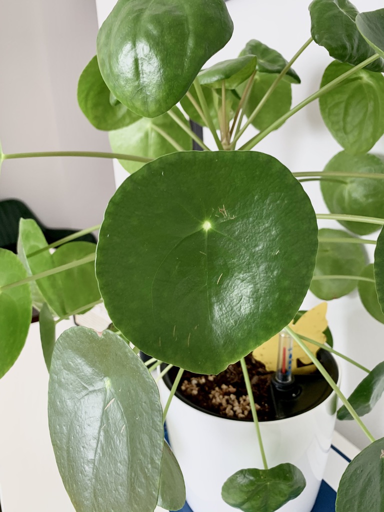 Expect to water your Pilea more frequently if it’s in a bright spot or exposed to higher temperatures (about once a week). If your money plant has many offshoots from the mother plant it will also have higher water needs than a single plant. When it is winter time or your plant is in a shadier spot it may only need a deep watering every 14 days.